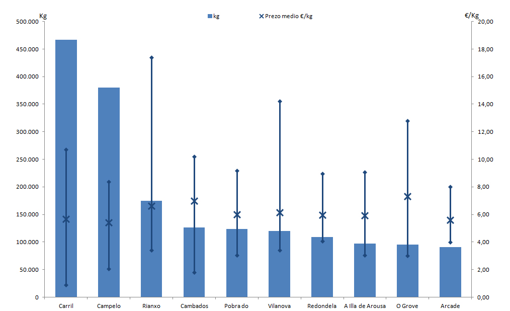 | O Grove | 210 | 95.535 | 4,43% | 698.837 | 5,39% | 7,31 |