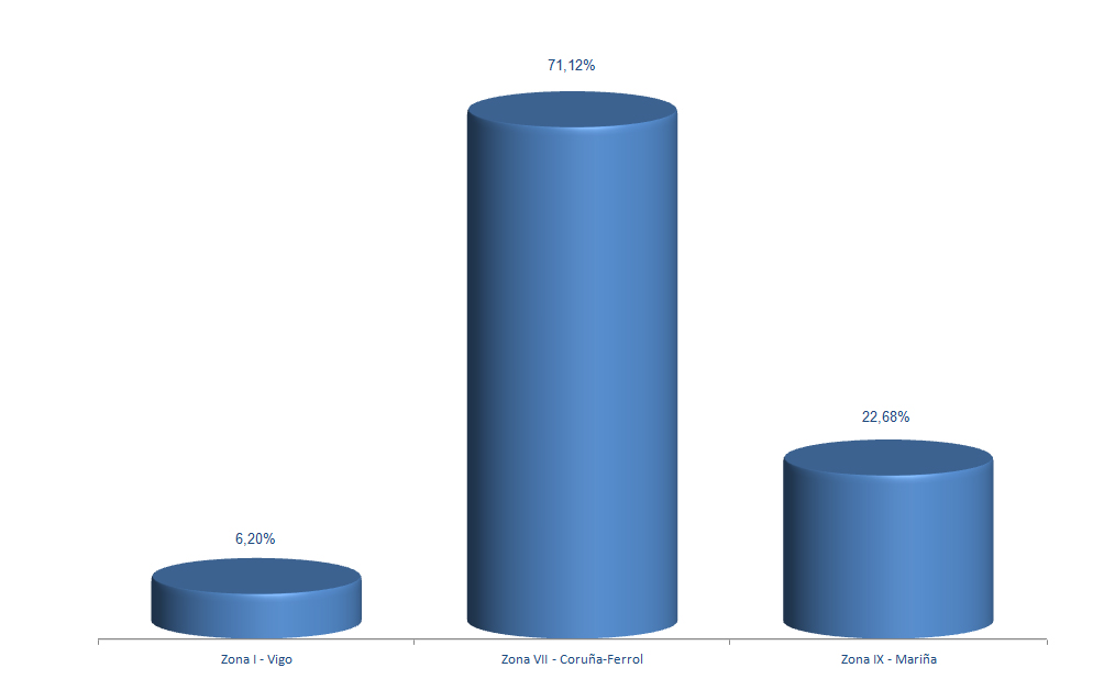 | Zona VII - Coruña-Ferrol | 169 | 2.142.406 | 71,12% | 6.049.441 | 74,47% | 2,82 |