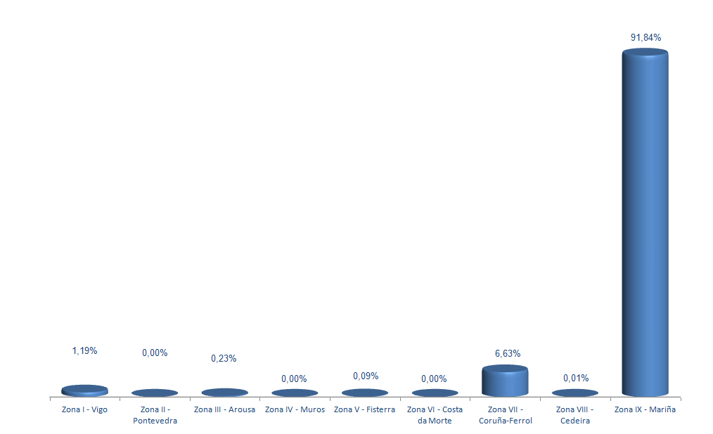 | Zona VIII - Cedeira | 15 | 94 | 0,01% | 2.194 | 0,02% | 23,31 |