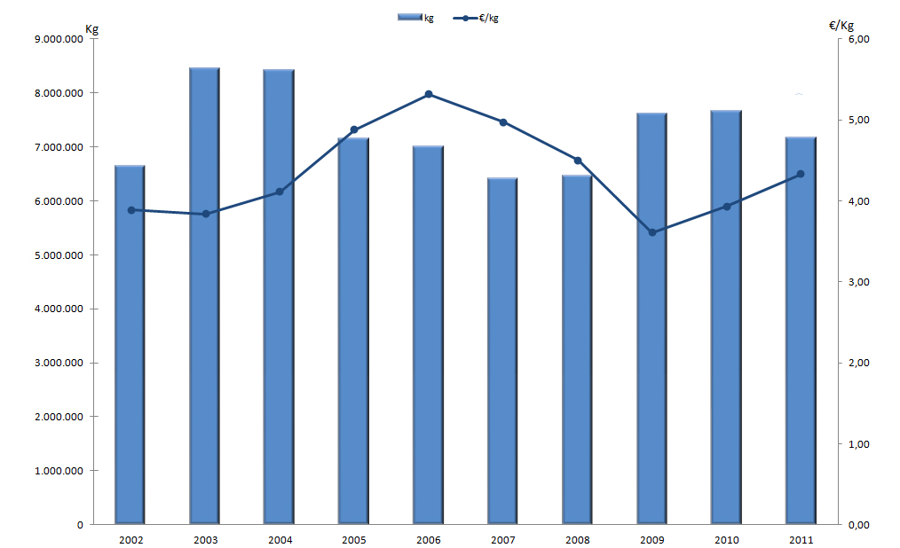 | Zona II - Pontevedra | 784.608 | 748.882 | 827.741 | 531.322 | 209.489 | 163.604 | 142.484 | 152.469 | 155.001 | 134.051 |