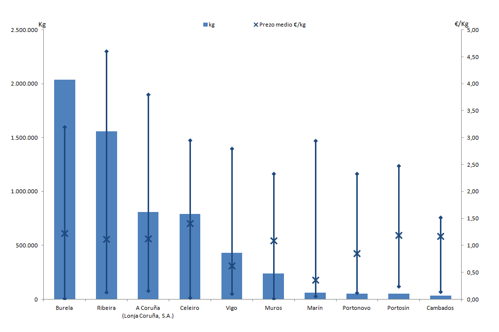 | A Coruña (Lonja Coruña, S.A.) | 137 | 809.008 | 13,17% | 913.638 | 12,94% | 1,13 |