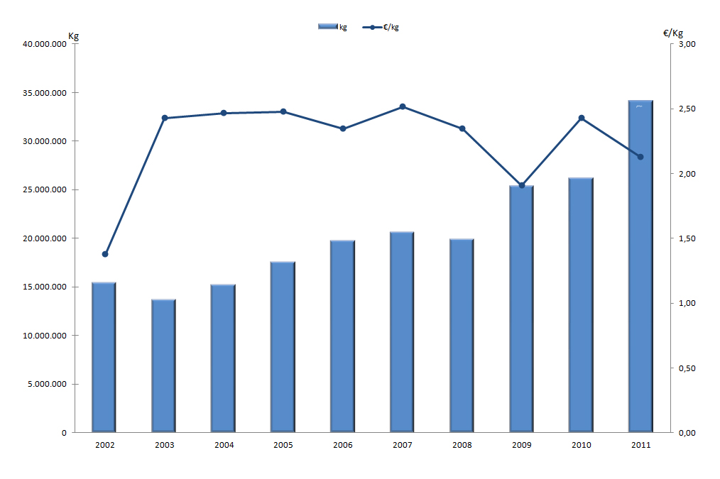 | Nº días | kg | % | Euros | % | Euros/kg | |