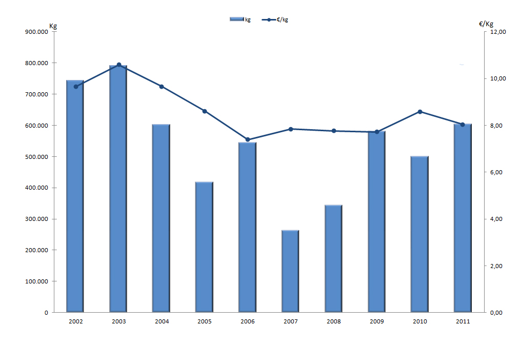 | Nº días | kg | % | Euros | % | Euros/kg | |