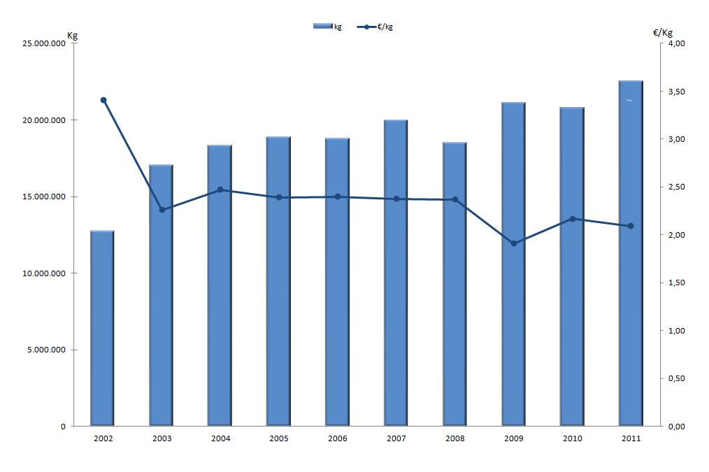 | Nº días | kg | % | Euros | % | Euros/kg | |