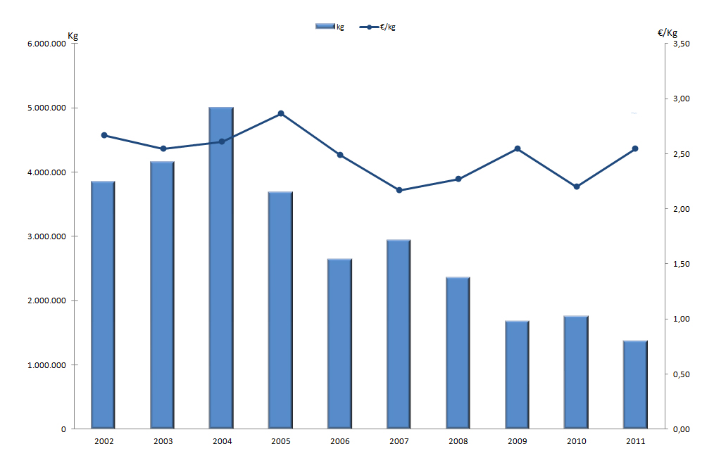 | Nº días | kg | % | Euros | % | Euros/kg | |