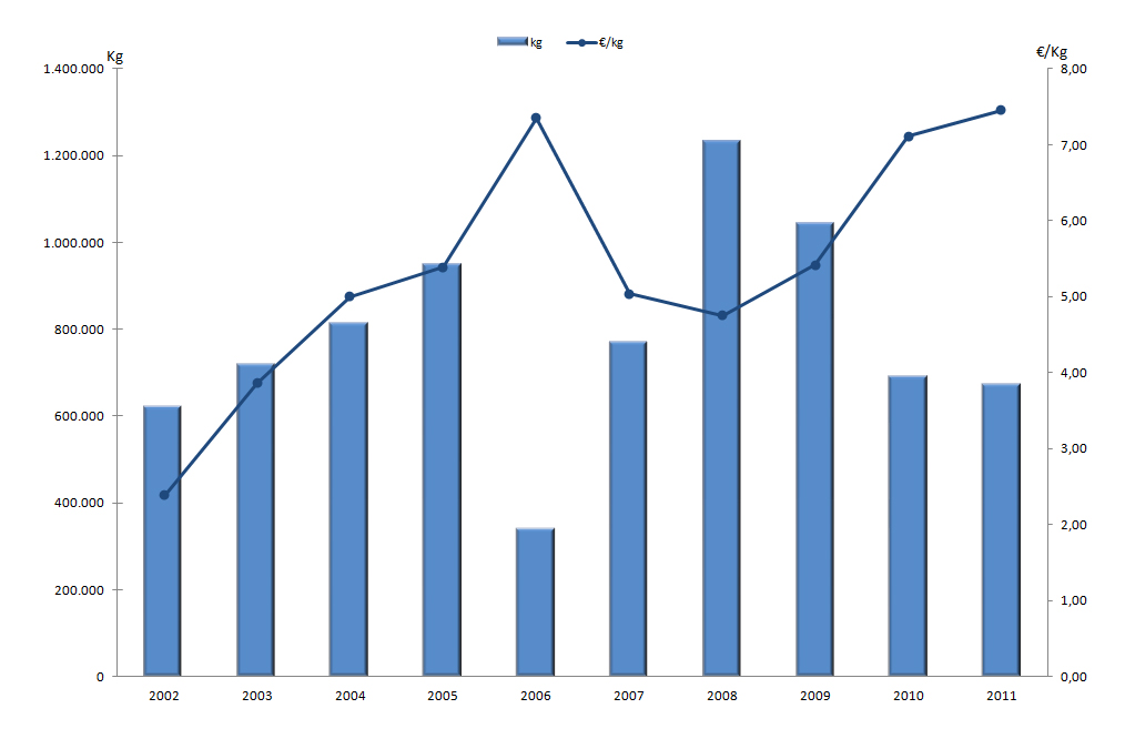 | Nº días | kg | % | Euros | % | Euros/kg | |