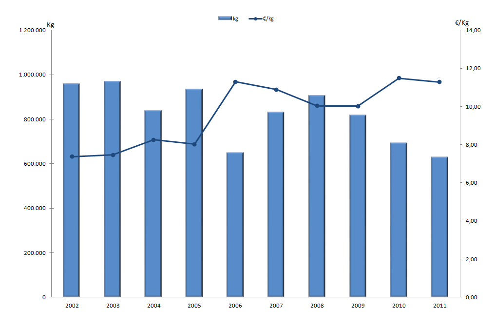 | Nº días | kg | % | Euros | % | Euros/kg | |