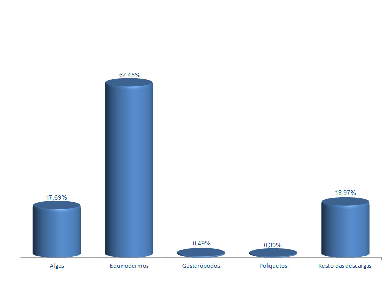 | Equinodermos | 702.128 | 62,45% | 2.056.875 | 71,79% | 2,93 |
