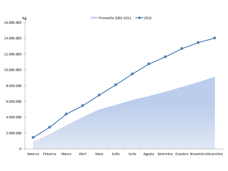 | Polbo cabezón | 1.232.453 | 1.818.442 | 1.274.290 | 1.387.936 | -41.837 | 430.506 | -3,28% | 31,02% |