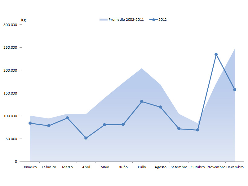 | Xuño | 81.480 | 1.217.850 | 95.935 | 1.561.226 | -14.455 | -343.376 | -15,07% | -21,99% |