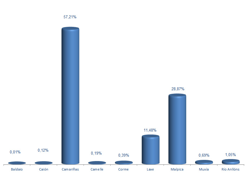 | Camariñas | 2.462.587 | 57,21% | 4.338.409 | 47,40% | 1,76 |