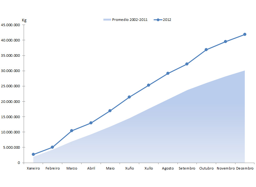 | A Coruña (Lonja Coruña, S.A.) | 40.701.245 | 83.370.498 | 37.461.426 | 79.892.873 | 3.239.819 | 3.477.626 | 8,65% | 4,35% |