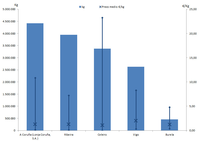 | A Coruña (Lonja Coruña, S.A.) | 254 | 4.415.927 | 29,76% | 5.785.389 | 28,15% | 1,31 |