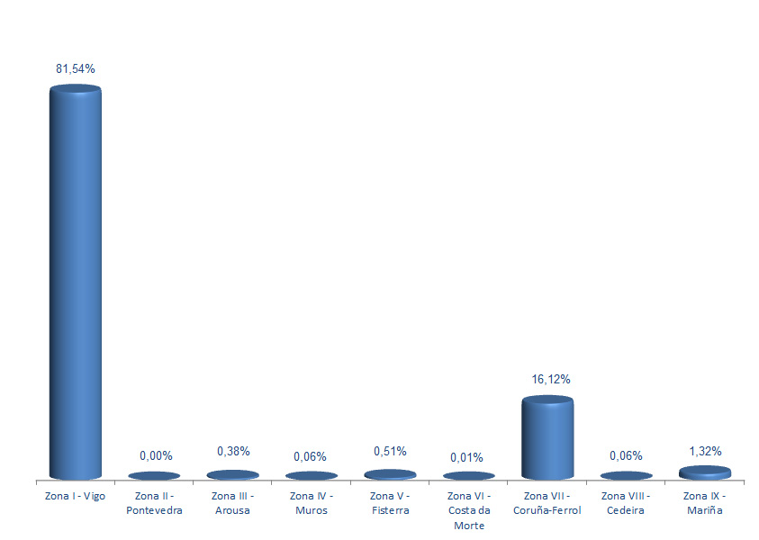 | Zona III - Arousa | 247 | 23.251 | 0,38% | 122.368 | 0,41% | 5,26 |