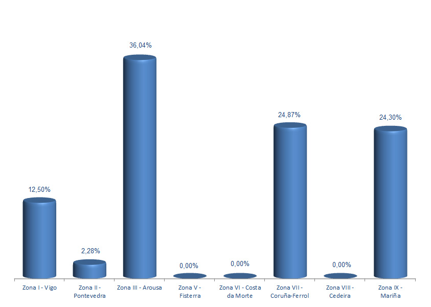 | Zona VIII - Cedeira | 22 | 164 | 0,00% | 754 | 0,01% | 4,60 |