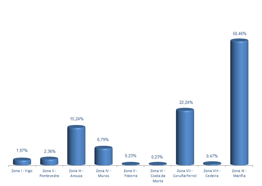 | Zona VI - Costa da Morte | 80 | 10.772 | 0,23% | 8.486 | 0,17% | 0,79 |