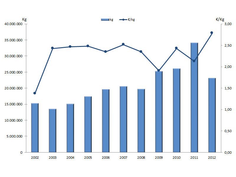 | Nº días | kg | % | Euros | % | Euros/kg | |