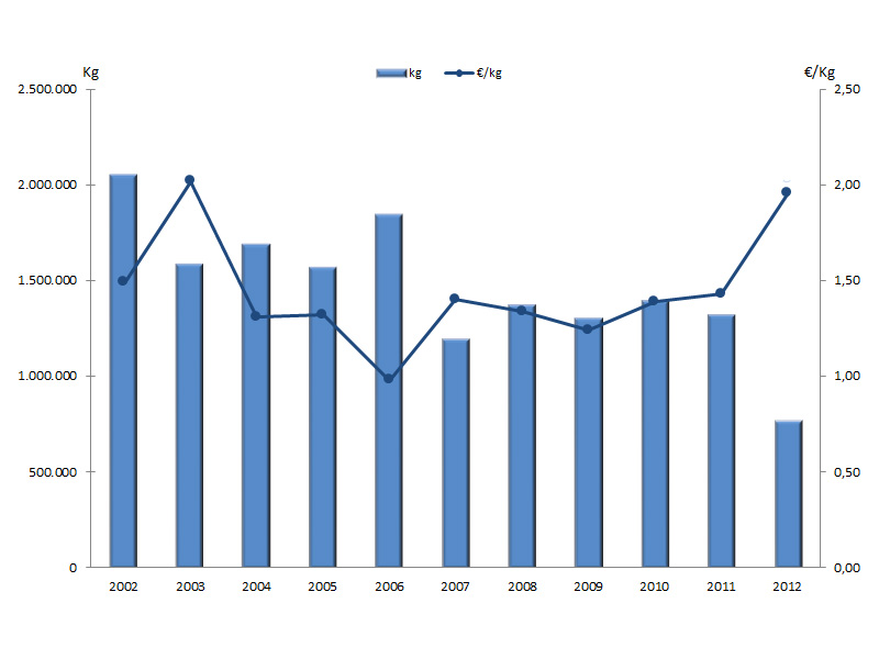 | Nº días | kg | % | Euros | % | Euros/kg | |