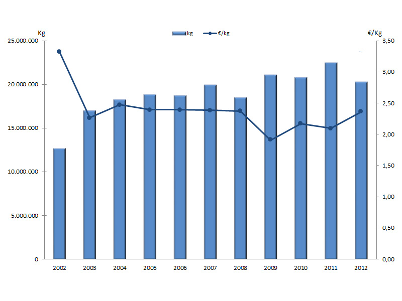 | Nº días | kg | % | Euros | % | Euros/kg | |