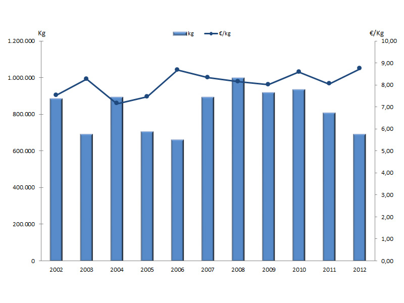 | Nº días | kg | % | Euros | % | Euros/kg | |