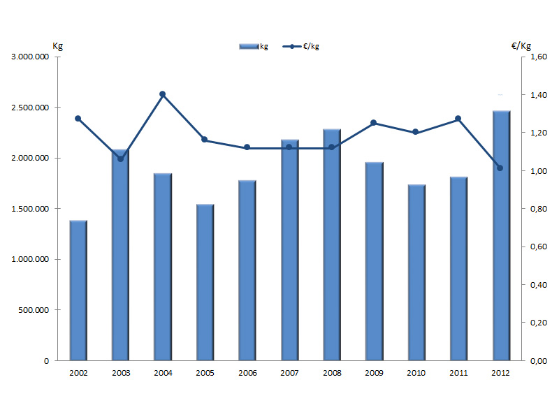 | Nº días | kg | % | Euros | % | Euros/kg | |