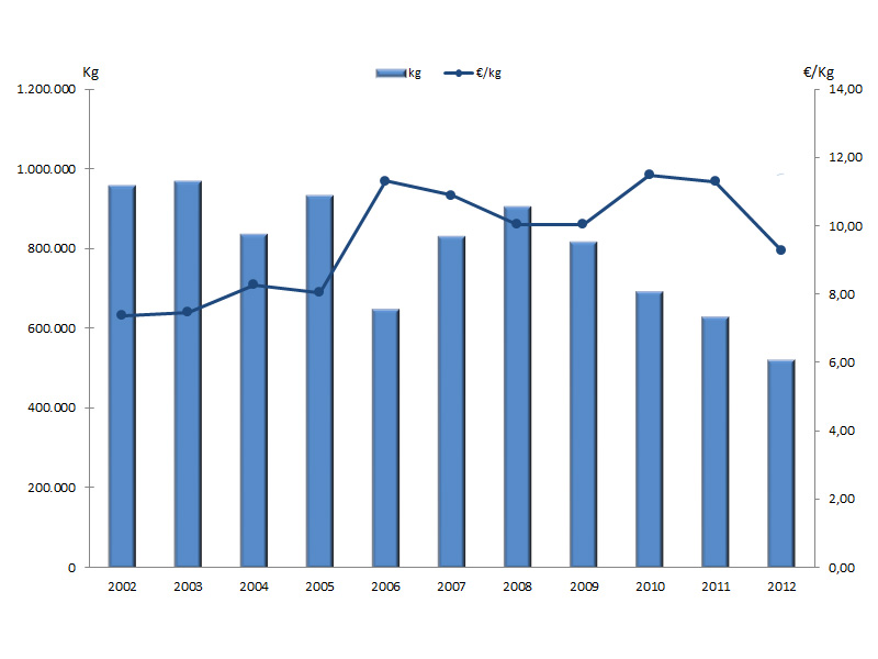 | Nº días | kg | % | Euros | % | Euros/kg | |