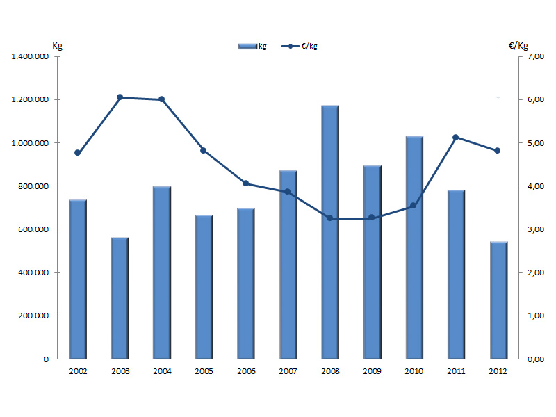 | Nº días | kg | % | Euros | % | Euros/kg | |