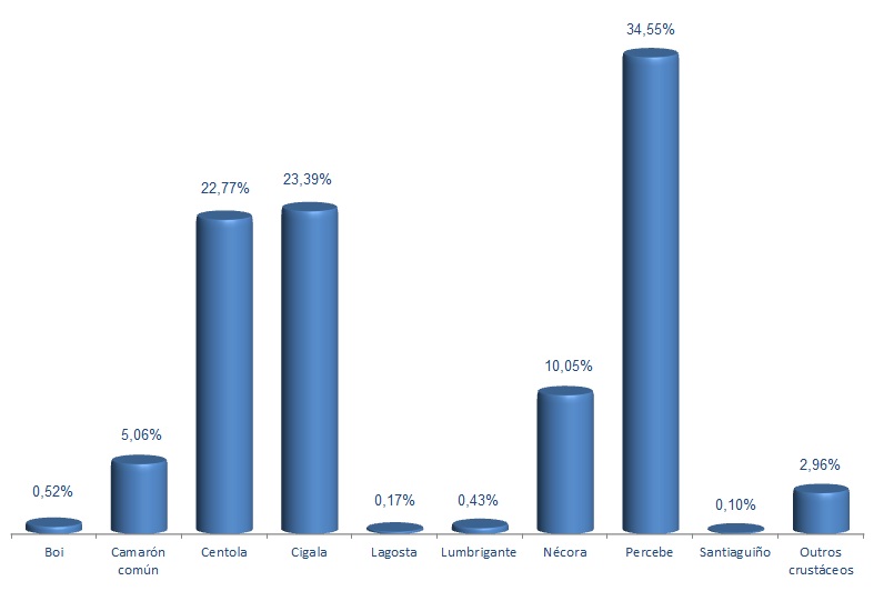 | Outros crustáceos | 27.805 | 2,96% | 34.650 | 0,21% | 1,25 |