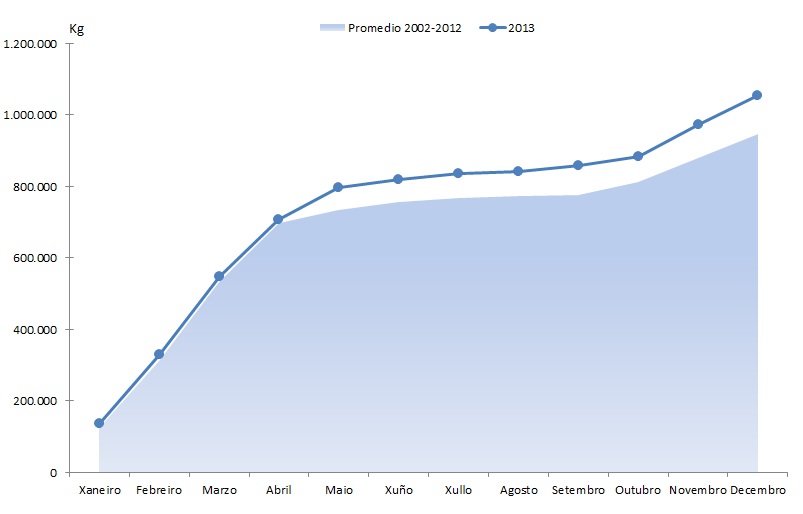 | Ovas de pescada | 168.174 | 505.928 | 119.356 | 356.918 | 48.818 | 149.010 | 40,90% | 41,75% |