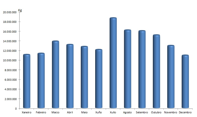 | Crustáceos | 70.318 | 49.611 | 50.532 | 42.472 | 58.335 | 76.250 | 130.426 | 109.777 | 66.702 | 42.675 | 115.447 | 126.942 | 939.487 |