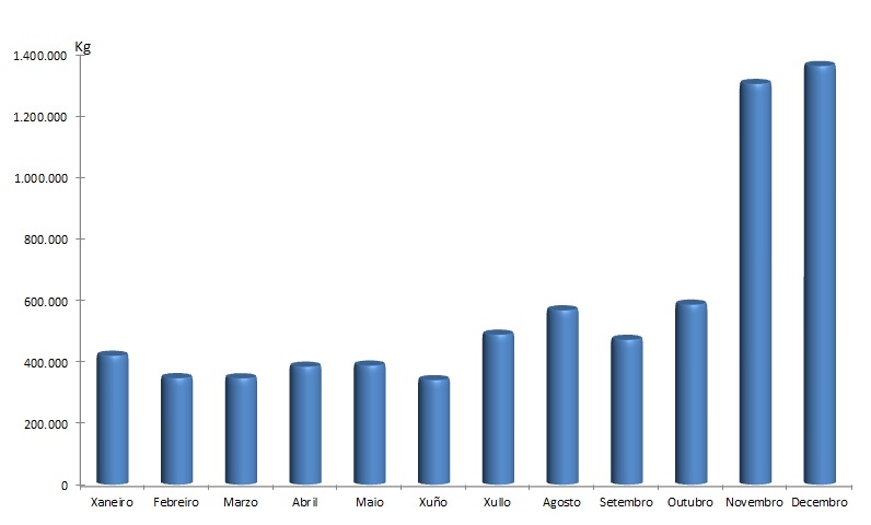 | Berberecho | 32.528 | 54.742 | 53.024 | 12.443 | 21.150 | 17.928 | 37.318 | 58.695 | 61.571 | 218.250 | 769.103 | 439.722 | 1.776.473 |