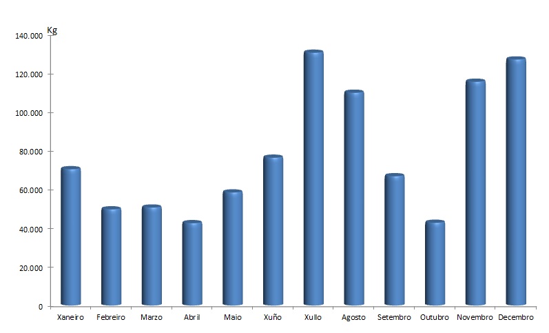 | Percebe | 13.329 | 13.848 | 19.350 | 17.649 | 28.861 | 38.588 | 50.296 | 50.951 | 27.943 | 19.346 | 15.642 | 28.775 | 324.577 |
