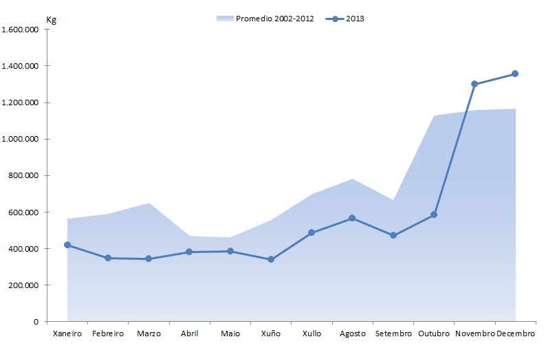 | Xaneiro | 418.145 | 2.813.352 | 540.117 | 3.612.710 | -121.971 | -799.357 | -22,58% | -22,13% |