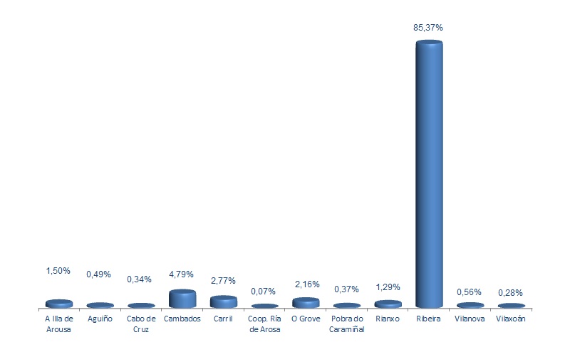 | A Illa de Arousa | 487.794 | 1,50% | 4.686.065 | 7,18% | 9,61 |