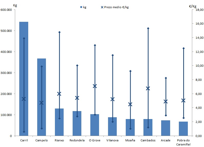 | Pobra do Caramiñal | 188 | 67.828 | 3,50% | 341.022 | 3,28% | 5,03 |