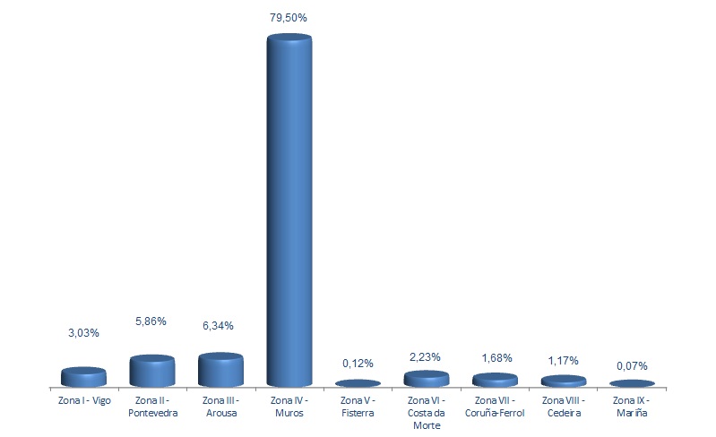 | Zona VIII - Cedeira | 84 | 20.800 | 1,17% | 95.985 | 1,28% | 4,61 |