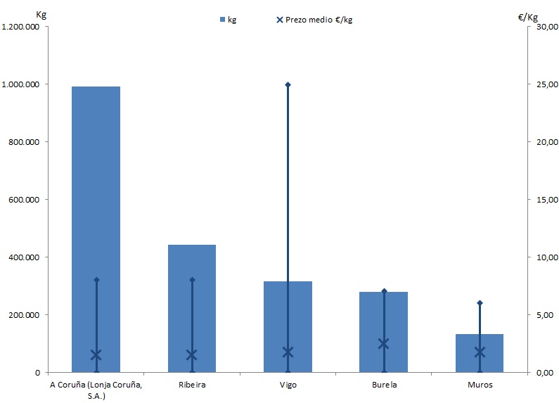 | A Coruña (Lonja Coruña, S.A.) | 256 | 991.839 | 40,36% | 1.504.536 | 35,28% | 1,52 |