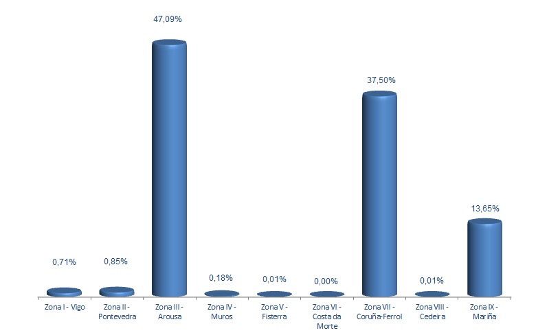 | Zona III - Arousa | 246 | 5.714.010 | 47,09% | 4.216.841 | 47,26% | 0,74 |