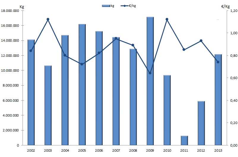 | Zona II - Pontevedra | 287.684 | 335.724 | 244.477 | 230.027 | 205.437 | 104.758 | 114.428 | 36.004 | 73.195 | 103.525 | |