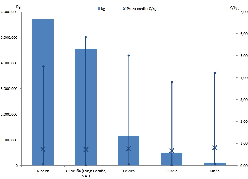 | A Coruña (Lonja Coruña, S.A.) | 244 | 4.550.383 | 37,50% | 3.344.449 | 37,48% | 0,73 |