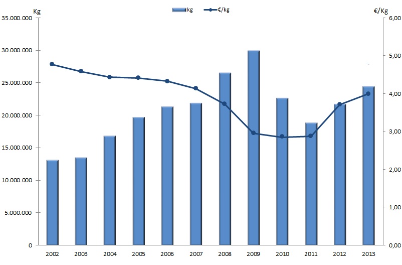 | Zona VIII - Cedeira | 182.352 | 259.582 | 261.129 | 270.188 | 371.266 | 332.528 | 255.992 | 212.500 | 141.137 | 141.033 | |