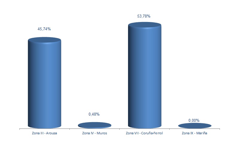 | Zona III - Arousa | 236 | 826.256 | 45,74% | 1.085.052 | 39,66% | 1,31 |