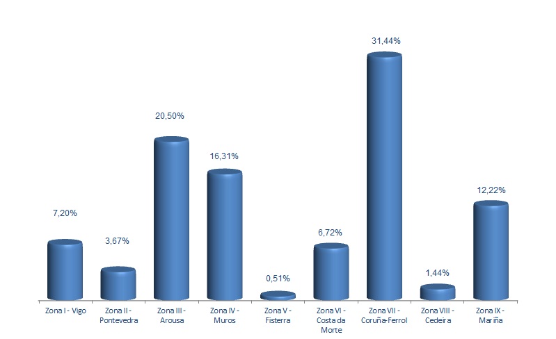 | Zona VI - Costa da Morte | 239 | 1.598.389 | 6,72% | 1.843.813 | 9,39% | 1,15 |