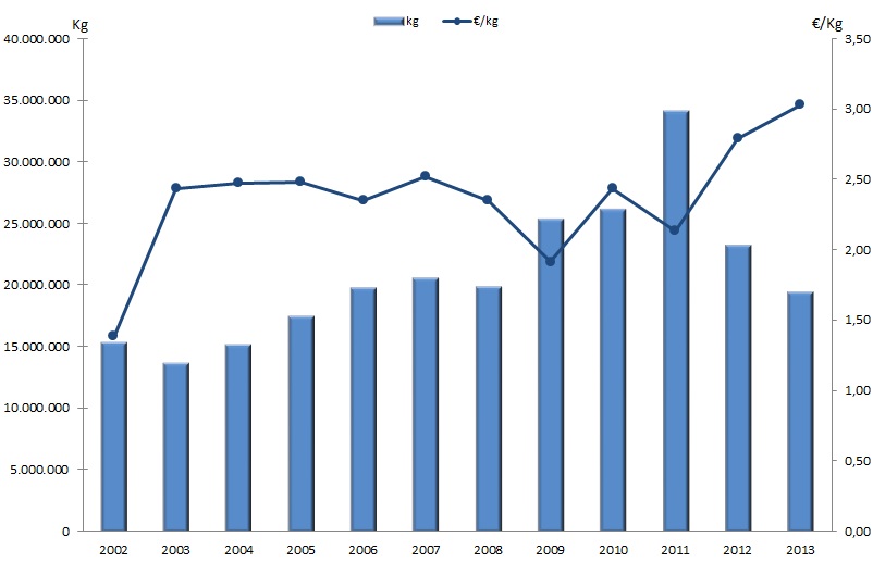 | Nº días | kg | % | Euros | % | Euros/kg | |