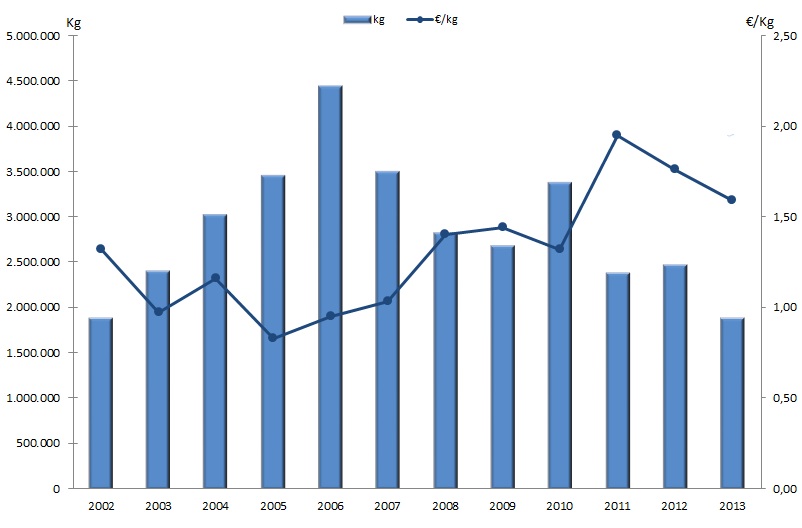 | Nº días | kg | % | Euros | % | Euros/kg | |