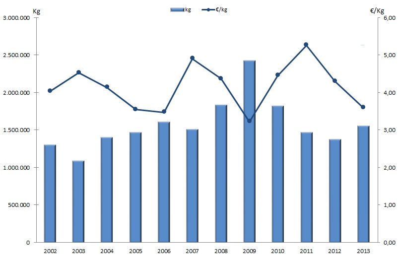 | Nº días | kg | % | Euros | % | Euros/kg | |