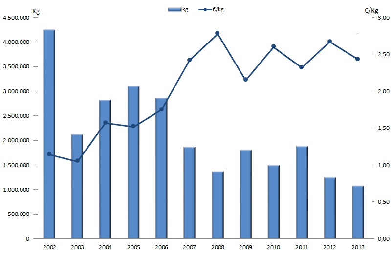 | Nº días | kg | % | Euros | % | Euros/kg | |