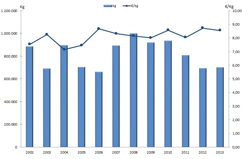 | Nº días | kg | % | Euros | % | Euros/kg | |