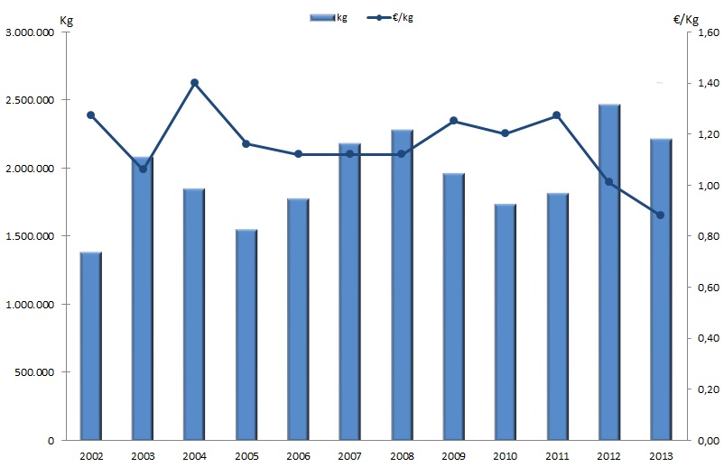 | Nº días | kg | % | Euros | % | Euros/kg | |