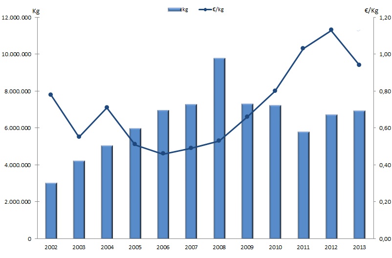 | Nº días | kg | % | Euros | % | Euros/kg | |